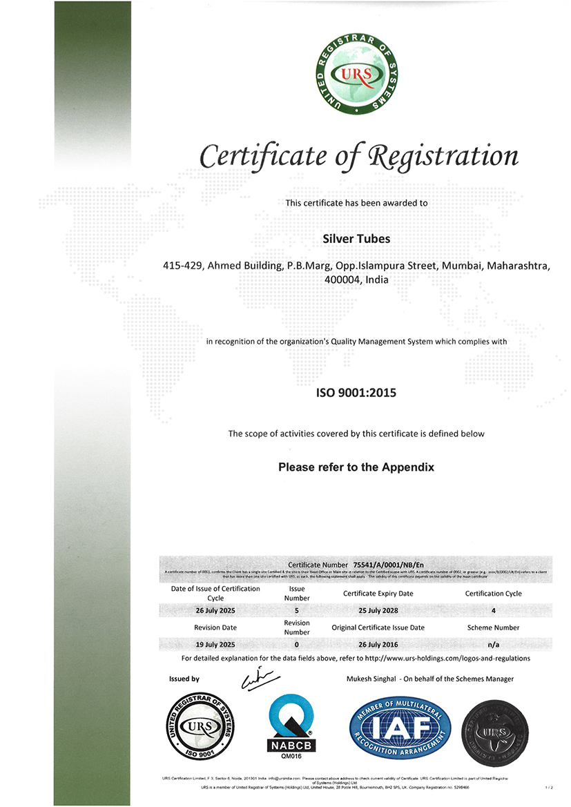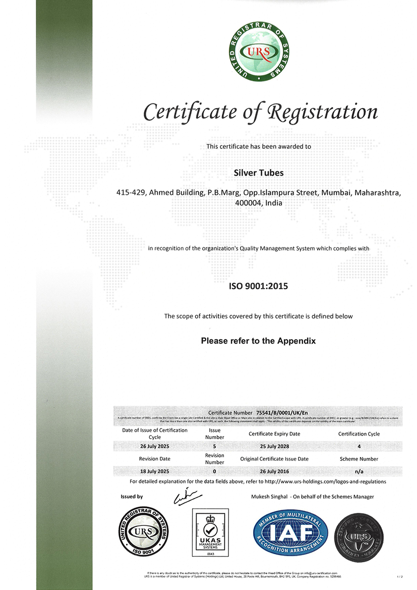 Some of the unique values of SILVER TUBES help us to sustain long term relation with our customers: The customer is at the center of everything we do. Complete customer satisfaction - in terms of products, services and punctuality - is our base-line.
